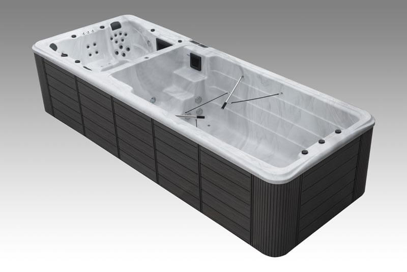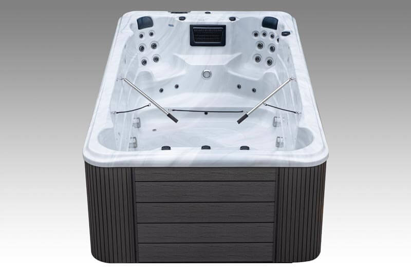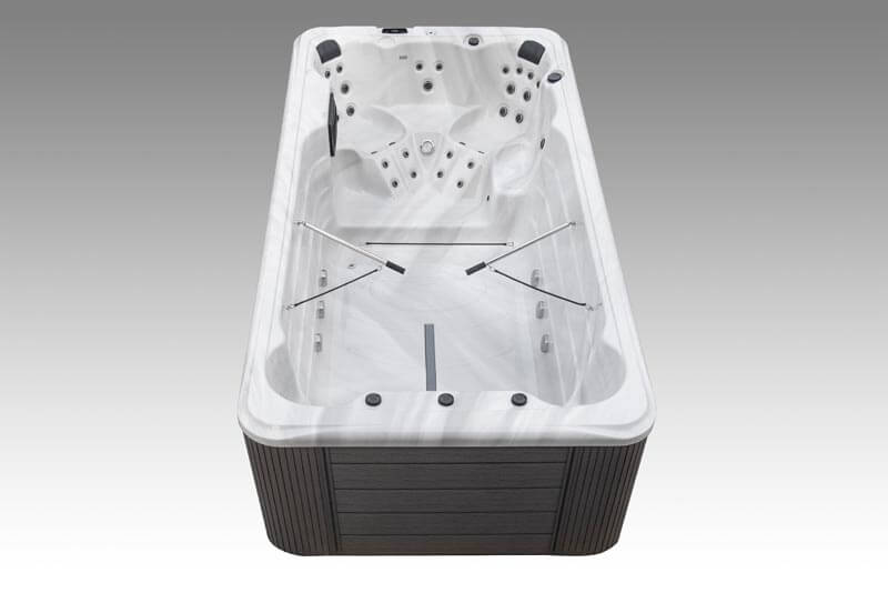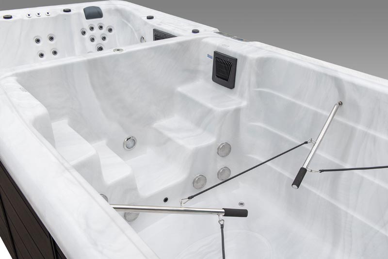 Feel comfortable all year long with our swim spas from Be Well Canada Spa. All our swim spas come with LED lighted jets and controls to set the perfect mood, three large river-style swim jets to accommodate swimmers of every level, and an ozone sanitizing system. If you need help deciding which model is right for your home, our friendly and knowledgeable team is here to guide you through our selection and provide you with more information. The three swim spa models we offer to homeowners include the following: