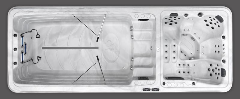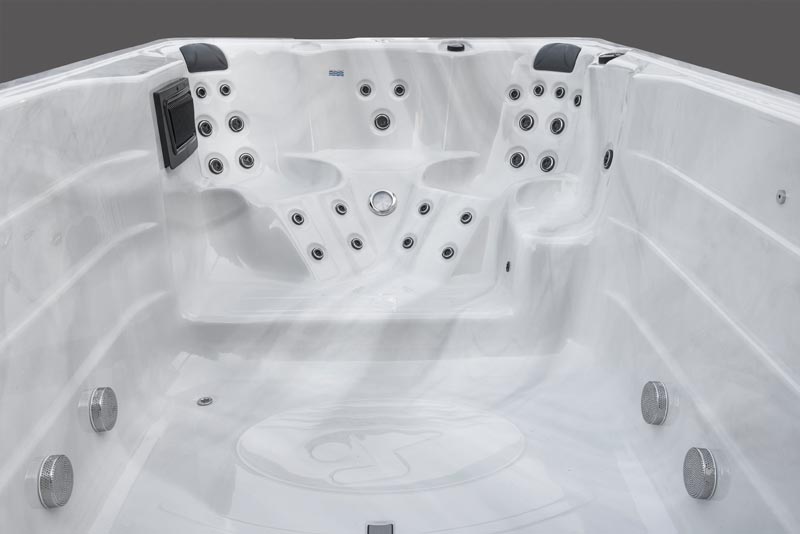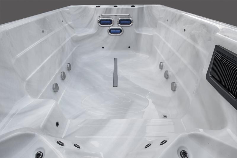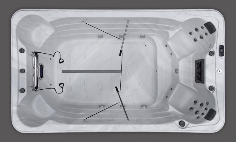 This nineteen-foot model features five high-powered jet pumps and two circulation pumps with a separately controlled swimming area and therapeutic spa. Keep your swimming area comfortable for swimming without sacrificing heat in your hot tub seats.